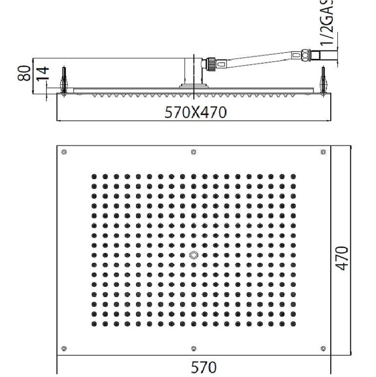 Размер верхнего душа, мм | 570*470 |