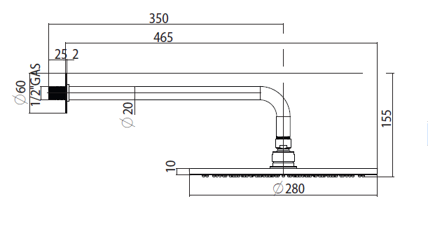 Верхний душ, Bossini, Nobu, тип установки-настенный, размер душевого диска, мм-280*280, форма-круглая, держатель-в комплекте, размер держателя, мм-350, материал-нержавеющая сталь, цвет-сталь матовая Верхний душ, Bossini, Nobu, 280*280, цвет-сталь матовая
