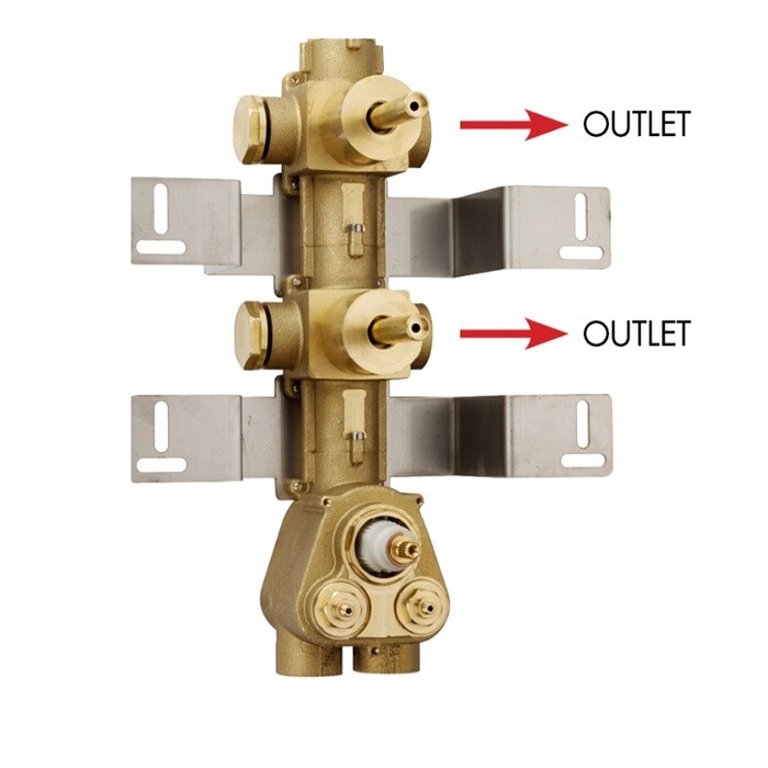 Внутренняя часть, Bossini, Oki/Cube/Rectangular, назначение-смеситель для душа термостатический высокой пропускной способности HighFlow на 2 выхода, стандарт подвода воды-3/4", установка горизонтальная или вертикальная, латунь Внутрення часть, Bossini, Oki/Cube/Rectangular, назначение-смеситель для душа термостатический HighFlow на 2 выхода, латунь