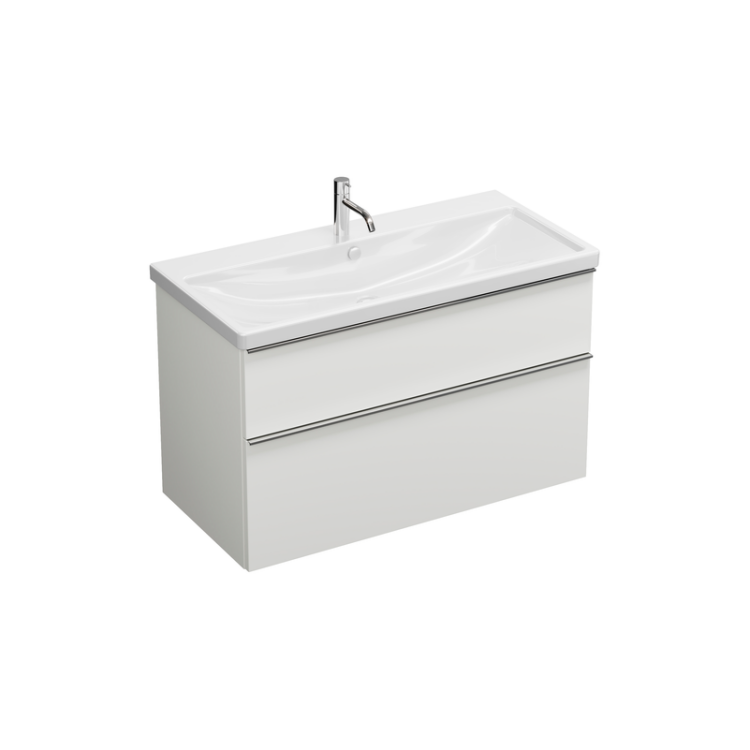 Тумба под раковину, Burg, Eqio, ширина, мм-1030, глубина, мм-490, высота, мм-645, тип установки-подвесной, раковина-есть, количество раковин в комплекте-1, размер раковины,шгв мм-970*130*340, монтаж раковины-встраиваемый, вырез под смеситель-один, ящики-2, верхний ящик с вырезом для сифона, ручки-хром G0146, материал корпуса-МДФ акрил, материал фасада-МДФ, цвет-белый Тумба под раковину, Burg, Eqio, шгв 1030*490*645, раковина-в комплекте, цвет-белый