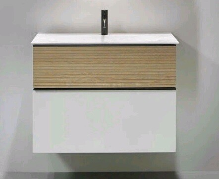 Тумба под раковину, Burg, Fiumo, ширина, мм-1020, глубина, мм-490, высота, мм-610, тип установки-подвесной, раковина-есть, количество раковин в комплекте-1, материал-минеральное литье, габариты раковины,мм-730*315*100, вырез под смеситель-один, ящики-2, верхний ящик с вырезом для сифона, верхний фасад с плиссированной передней частью, цвет верхнего фасада-Cashmere oak decor, цвет нижнего фасада-белый матовый, цвет ручки-Matt black Тумба под раковину, Burg, Fiumo, шгв 1020*490*610, раковина-в комплекте, цвет-белый матовый/Cashmere oak decor