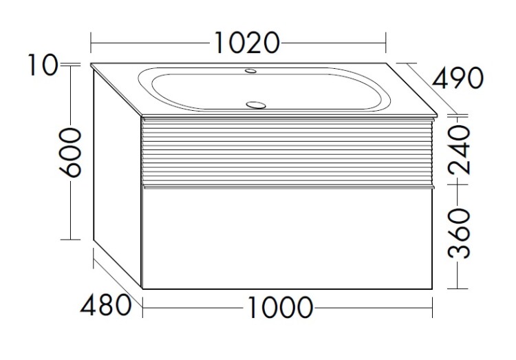 Тумба под раковину, Burg, Fiumo, ширина, мм-1020, глубина, мм-490, высота, мм-610, тип установки-подвесной, раковина-есть, количество раковин в комплекте-1, материал-минеральное литье, габариты раковины,мм-730*315*100, вырез под смеситель-один, ящики-2, верхний ящик с вырезом для сифона, верхний фасад с плиссированной передней частью, цвет верхнего фасада-tectona cinnmon decor, нижний фасад-graphite soft matt, цвет ручки-черный матовый Тумба под раковину, Burg, Fiumo, шгв 1020*490*610, раковина-в комплекте, цвет-tectona cinnmon decor/graphite soft matt