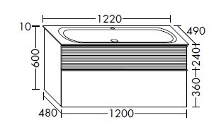 Тумба под раковину, Burg, Fiumo, ширина, мм-1220, глубина, мм-490, высота, мм-610, тип установки-подвесной, раковина-есть, количество раковин в комплекте-1, материал-минеральное литье, габариты раковины,мм-990*315*100, вырез под смеситель-один, ящики-2, верхний ящик с вырезом для сифона, верхний фасад с плиссированной передней частью, цвет верхнего фасада-tectona cinnmon decor, нижний фасад-graphite soft matt, цвет ручки-чёрный матовый Тумба под раковину, Burg, Fiumo, шгв 1220*490*610, раковина-в комплекте, цвет-tectona cinnmon decor/graphite soft matt