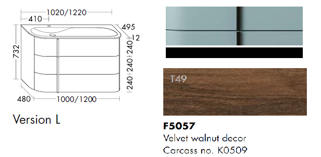 Тумба под раковину, Burg, Lavo 2.0, левосторонняя, ширина, мм-1020, глубина, мм-495, высота, мм-732, тип установки-подвесной, раковина-необходимо заказать, количество раковин в комплекте-1, вырез под раковину-один, монтаж раковины-встраиваемый/накладной, материал раковины-минеральное литьё, цвет раковины-белый глянцевый, 1 верхний ящик с выемкой для сантехники, 2 ящика для хранения, 1 выдвижной ящик по центру, 1 выдвижной ящик снизу, вкючает-burgbad cleanFlow, вырез под смеситель-один, ручка-G0227, цвет ручки-черный, цвет-Velvet walnut decor Тумба под раковину, Burg, Lavo 2.0, шгв 1020*495*732, левосторонняя, количество раковин в комплекте-1, вырез под смеситель-1, цвет-Velvet walnut decor