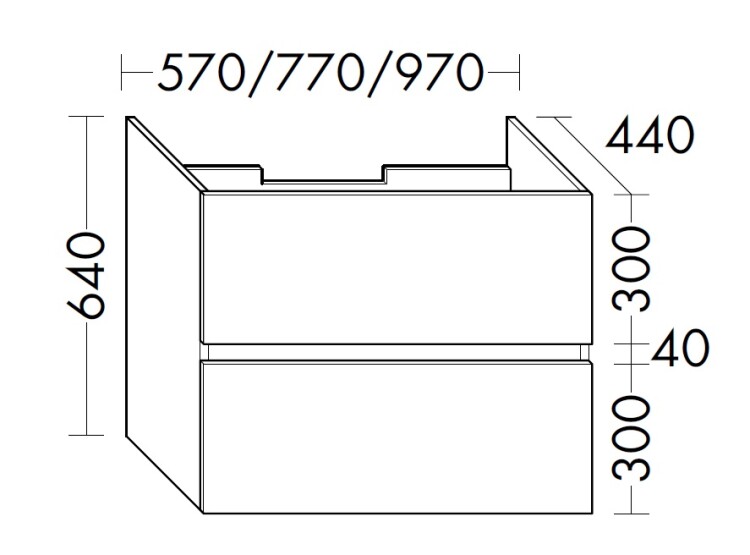Тумба под раковину, Burg, Rocio, ширина, мм-970, глубина, мм-440, высота, мм-640, тип установки-подвесной, раковина-необходимо заказать, ящики-2, вырез под сифон, ручки-выемки, цвет ручки-в цвет мебели, материал корпуса-ДСП, материал фасада-ДСП, цвет-белый матовый Тумба под раковину, Burg, Rocio, шгв 970*440*640, раковина-необходимо заказать, цвет-белый матовый