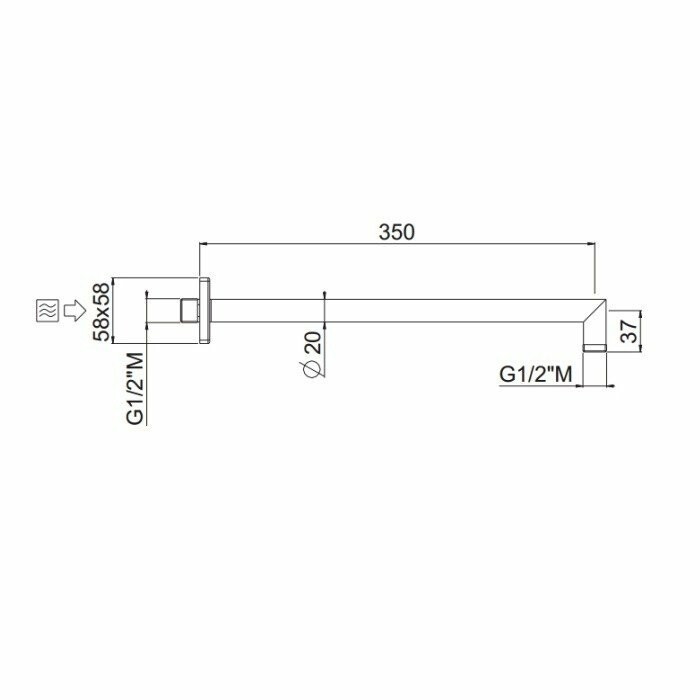 Держатель верхнего душа, Carimali, Tondo, вид-настенный, вынос, мм-350, фитинг G 1/2”, материал-латунь, цвет-хром Держатель верхнего душа, Carimali, Tondo, цвет-хром
