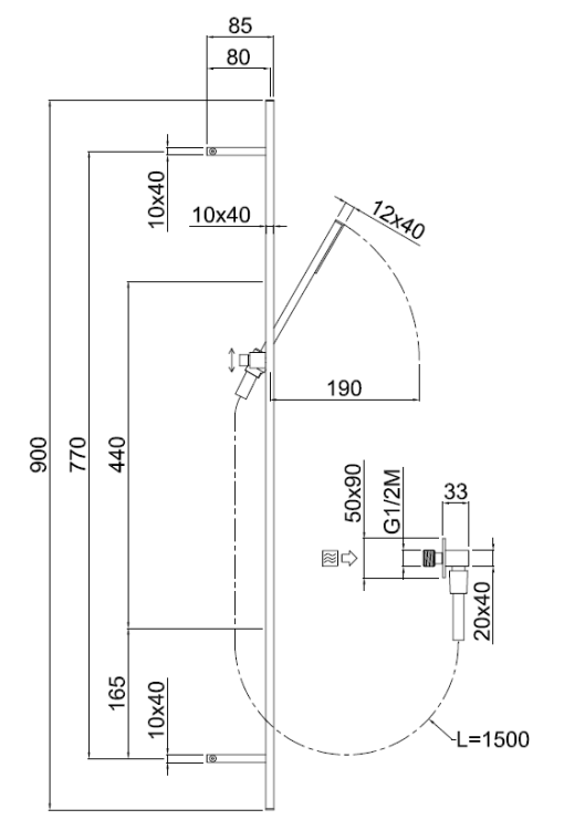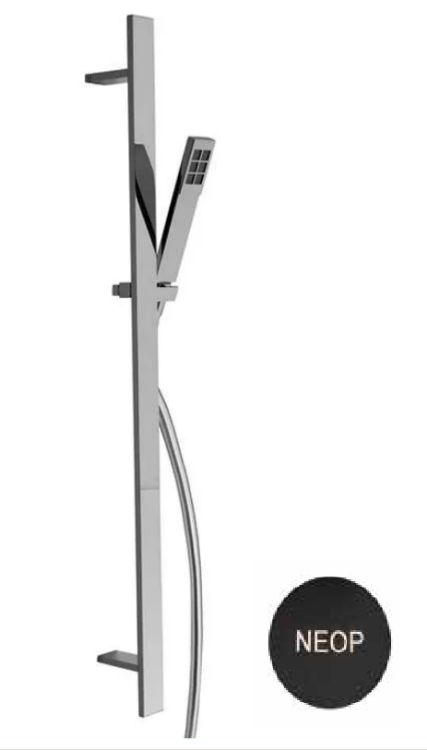 Душевой гарнитур, Carimali, размер штанги, мм-900, размер шланга, мм-1500, размер душевого диска, мм-12*40, без выхода из стены, форма лейки-прямоугольная, количество режимов-1 (функциональный душ "Vehla" из латуни с защитой от известкового налета с возможностью проверки и техобслуживания), скользящая опора для душа полностью из латуни, в комплекте-гибкий шланг ПВХ 1500 мм, двойная защита от перекручивания, цвет-черный матовый Душевой гарнитур, Carimali, 12*40, без выхода из стены, цвет-черный матовый