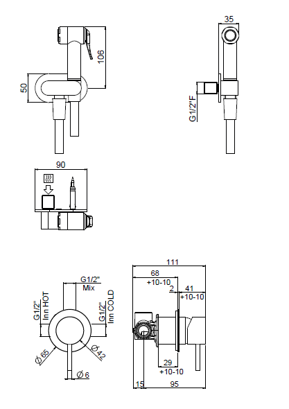 Гигиенический душ, Carimali, шланг-есть, длина шланга, мм-1200, материал шланга-ПВХ, держатель-в комплекте, смеситель и внутреннюю часть-необходимо заказать, цвет-хром Гигиенический душ, Carimali, цвет-хром