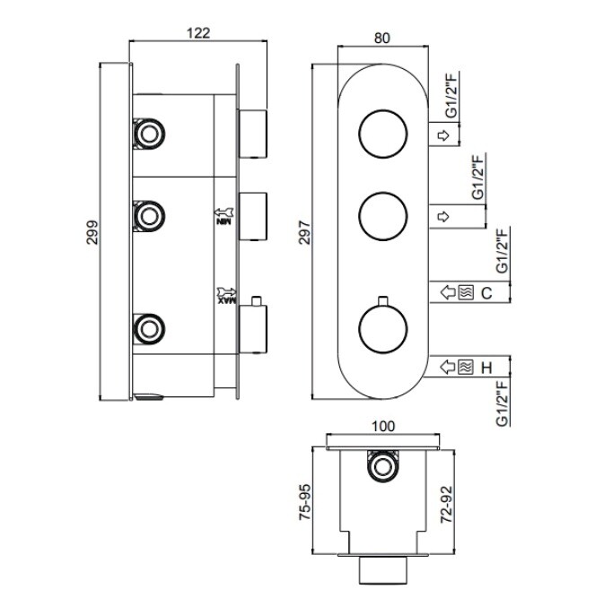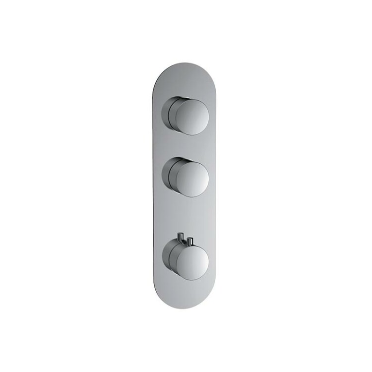 Смеситель для душа, Carimali, ILTONDO, на 2 потребителя, тип открывания воды-однорычажный, тип регулирования воды-термостатический картридж, монтаж-настенный встраиваемый, установка-вертикальная, круглые ручки/эстетическая панель, внутренняя часть-необходимо заказать, цвет-хром Смеситель для душа, Carimali, ILTONDO, на 2 потребителя, цвет-хром