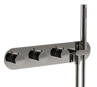 Смеситель для душа, Carimali, ILTONDO, на 4 потребителя, тип открывания воды-вентильный, тип регулирования воды-термостатический картридж, монтаж-настенный встраиваемый, в комплекте-ручной душ, количество режимов-1, держатель ручного душа, шланг,мм-1500, поворотный дивертор, внутренняя часть-необходимо заказать, цвет-черный матовый Смеситель для душа, Carimali, ILTONDO, на 4 потребителя, цвет-черный матовый