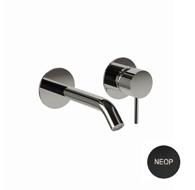 Смеситель для раковины, Carimali, ILTONDO, тип открывания воды-однорычажный, тип регулирования воды-керамический картридж, монтаж-настенный встраиваемый, отверстия для монтажа-2, высота, мм-60, вынос излива, мм-220, тип излива-неподвижный, донный клапан-отсутствует, тип подводки-жесткая, стандарт подвода воды-1/2", внутренняя часть-необходимо заказать, цвет-черный матовый Смеситель для раковины, Carimali, ILTONDO, цвет-черный матовый