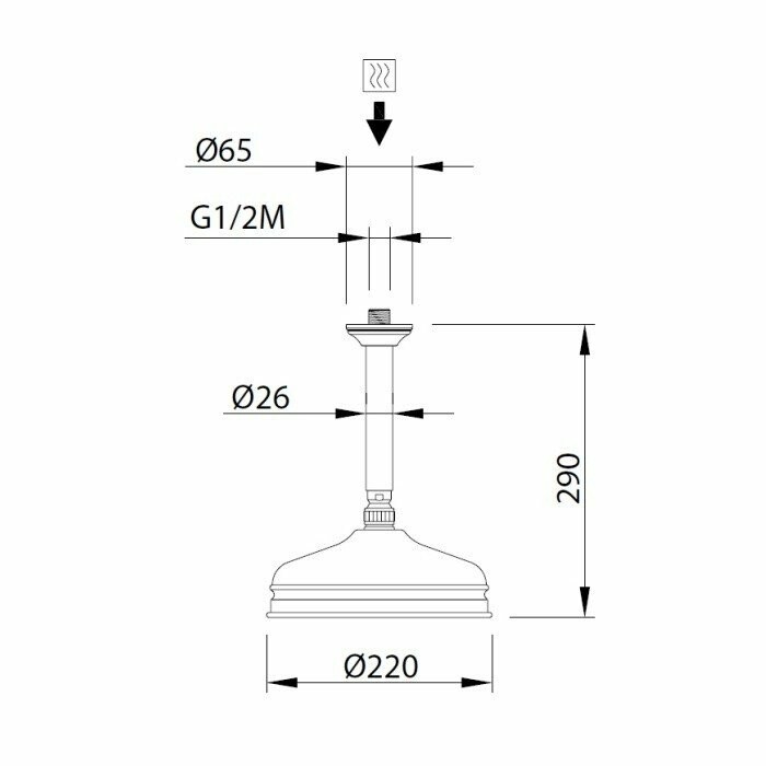 Верхний душ, Carimali, Colonial, тип установки-потолочный, размер душевого диска, мм-220*220, форма-круглая, количество режимов-1, тип струи-дождь (Rain), держатель-в комплекте, материал держателя-латунь, лейка-нержавеющая сталь, цвет-хром Верхний душ, Carimali, Colonial, 220*220, цвет-хром