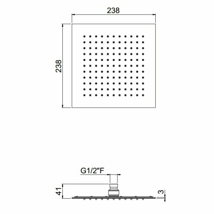 Верхний душ, Carimali, MySlim, ультратонкий, тип установки-настенный, потолочный, размер душевого диска, мм-240*240, форма-квадратная, количество режимов-1, держатель-необходимо заказать, материал-нержавеющая сталь, цвет-хром Верхний душ, Carimali, MySlim, 240*240, цвет-хром