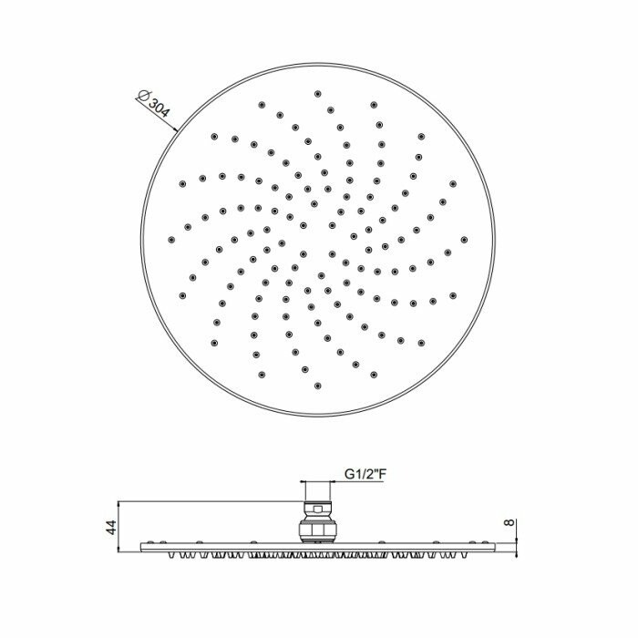 Верхний душ, Carimali, OttoMillimetri, ультратонкий, инспектируемый , тип установки-настенный, потолочный, размер душевого диска, мм-300*300, форма-круглая, держатель-необходимо заказать, цвет-хром Верхний душ, Carimali, OttoMillimetri, 300*300, цвет-хром