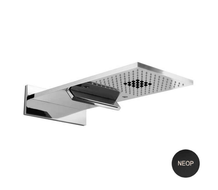 Верхний душ, Carimali, YES, тип установки-настенный, форма-прямоугольная, 144 форсунки, из которых 16 форсунок для мягкой струи, поддающиеся проверке и обслуживанию, 3 струи: дождь, мягкий, каскадный, материал-нежавеющая сталь, цвет-черный матовый Верхний душ, Carimali, YES, цвет-черный матовый
