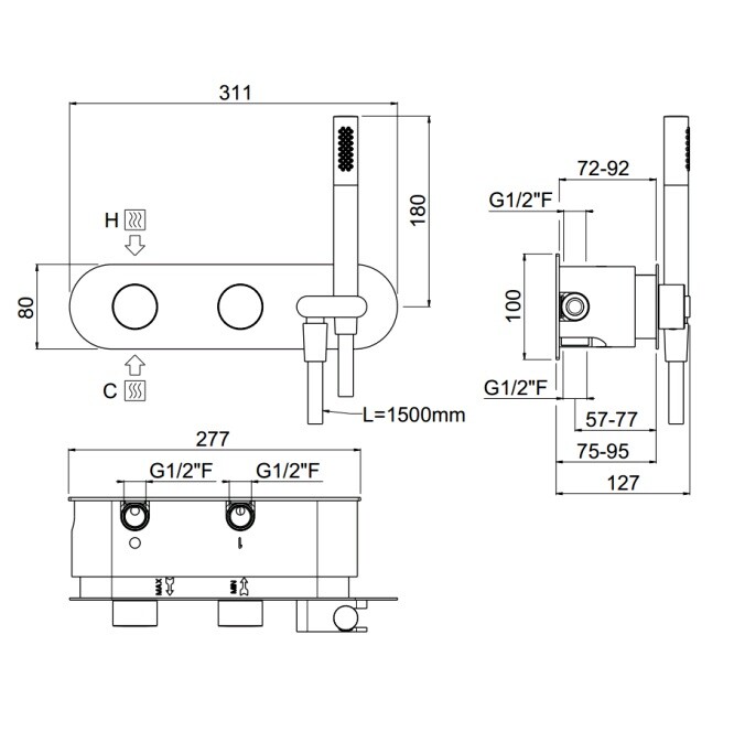 Внутрення часть, Carimali, для прогрессивного смесителя c держателем для душа, на 3 выхода, стандарт подвода воды-1/2", цвет-хром Внутрення часть, Carimali, для прогрессивного смесителя c держателем для душа, на 3 выхода, цвет-хром