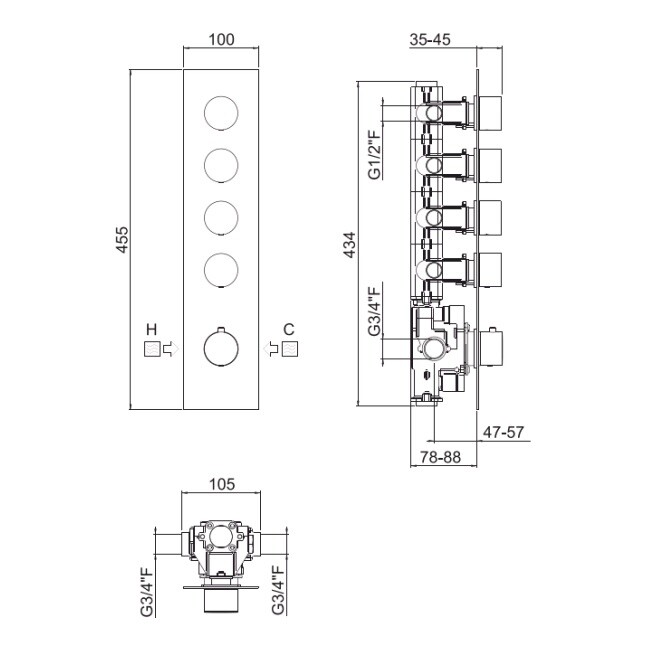 Внутрення часть, Carimali, назначение-смеситель для душа термостатический, с 4-мя независимыми выходами, цвет-хром Внутрення часть, Carimali, назначение-смеситель для душа термостатический, с 4-мя независимыми выходами, цвет-хром