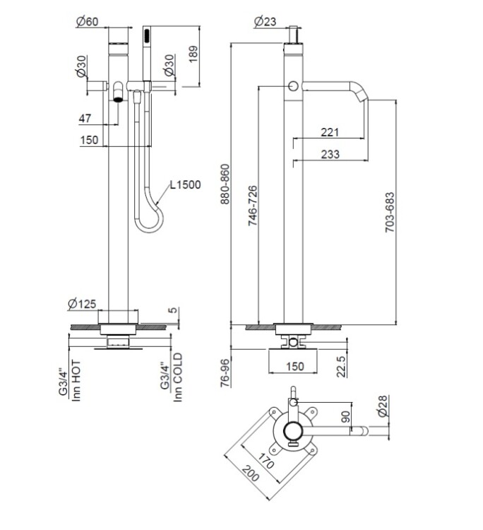 Внутренняя часть, Carimali, назначение-напольный смеситель для ванны и душа, стандарт подвода воды-3/4", не окрашен Внутренняя часть, Carimali, назначение-напольный смеситель для ванны и душа, не окрашен