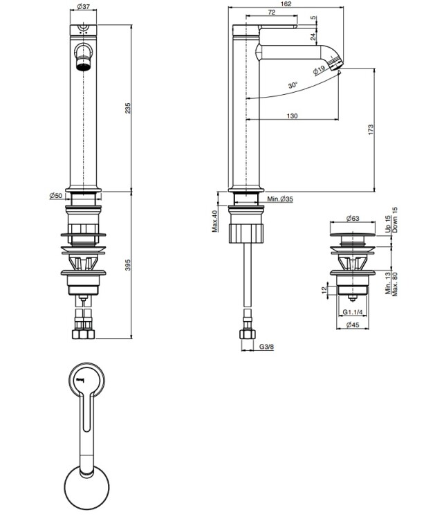 Смеситель для раковины, Fima Carlo Frattini, Snap, тип открывания воды-однорычажный, тип регулирования воды-керамический картридж, монтаж-на раковину/столешницу, отверстия для монтажа-1, высота, мм-235, вынос излива, мм-130, тип излива-неподвижный, донный клапан-есть (click-clack 1``1/4), тип подводки-гибкая, стандарт подвода воды-3/8", цвет-хром Смеситель для раковины, Fima Carlo Frattini, Snap, цвет-хром
