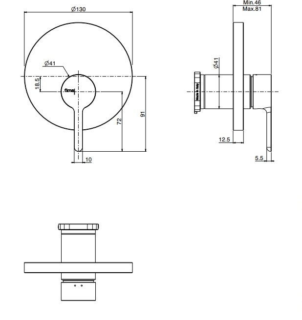Смеситель для душа, Fima Carlo Frattini, Snap, тип открывания воды-однорычажный, тип регулирования воды-керамический картридж, монтаж-настенный встраиваемый, отверстия для монтажа-1, металлическая пластина, внутренняя часть-необходимо заказать, цвет-золото брашированное Смеситель для душа, Fima Carlo Frattini, Snap, цвет-золото брашированное