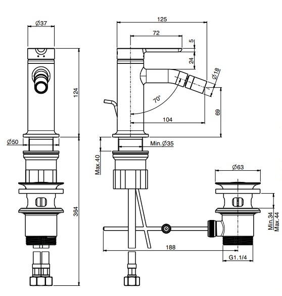 Смеситель для биде, Fima Carlo Frattini, Snap, тип открывания воды-однорычажный, тип регулирования воды-керамический картридж, отверстия для монтажа-1, высота, мм-124, вынос излива, мм-104, материал ручки-металл, цвет ручки-в цвет смесителя, донный клапан-есть 1"1/4 (click-clack), тип подводки-гибкая, цвет-черный матовый Смеситель для биде, Fima Carlo Frattini, Snap, цвет-черный матовый