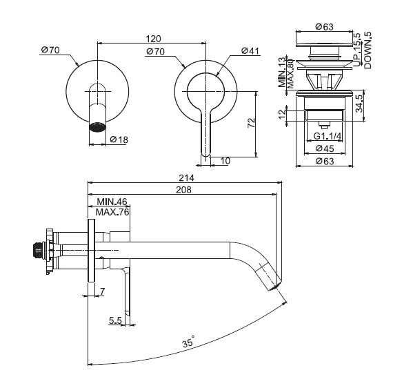 Смеситель для раковины, Fima Carlo Frattini, Snap, тип открывания воды-однорычажный, тип регулирования воды-керамический картридж, монтаж-настенный встраиваемый, отверстия для монтажа-2, вынос излива, мм-208, тип излива-неподвижный, донный клапан-есть (click-clack 1``1/4), металлическая пластина, внутренняя часть-необходимо заказать, цвет-чёрный хром брашированный Смеситель для раковины, Fima Carlo Frattini, Snap, цвет-чёрный хром брашированный