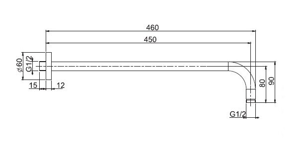 Держатель верхнего душа, Fima Carlo Frattini, Showerhead, вид-настенный, вынос, мм-450, 1/2”, цвет-брашированный черный хром Держатель верхнего душа, Fima Carlo Frattini, Showerhead, цвет-брашированный черный хром