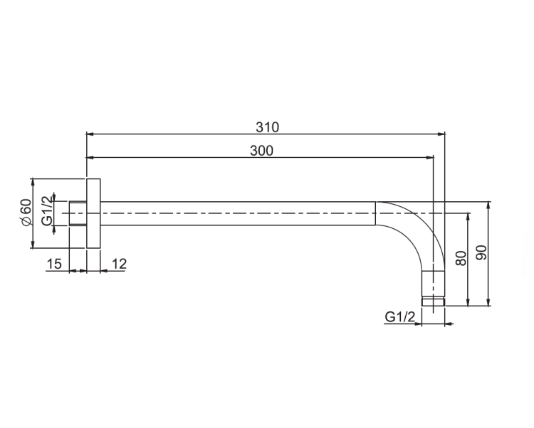 Держатель верхнего душа, Fima Carlo Frattini, Showerhead, вид-настенный, вынос, мм-300, 1/2”, цвет-брашированный шампань Держатель верхнего душа, Fima Carlo Frattini, Showerhead, цвет-брашированный шампань