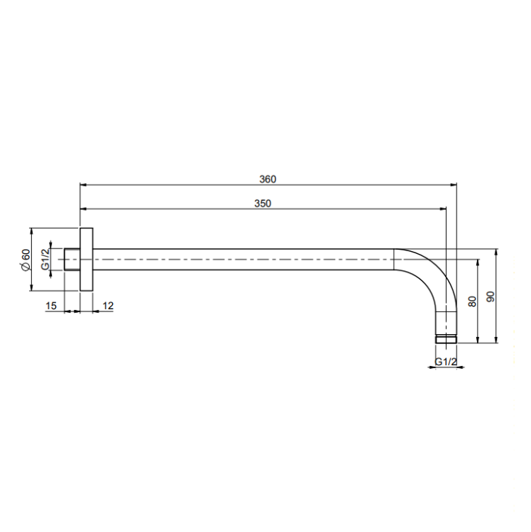 Держатель верхнего душа, Fima Carlo Frattini, Showerhead, вид-настенный, вынос, мм-350, 1/2”, цвет-золото Держатель верхнего душа, Fima Carlo Frattini, Showerhead, цвет-золото