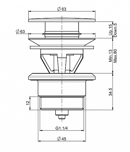 Донный клапан, Fima Carlo Frattini, Complementi Bagno, с крепежным винтом, Click Clack, 1 1/4", форма крышки-круглая, диаметр крышки, мм-63, материал крышки-латунь, цвет крышки-хром Донный клапан, Fima Carlo Frattini, Complementi Bagno, 1 1/4", цвет крышки-хром