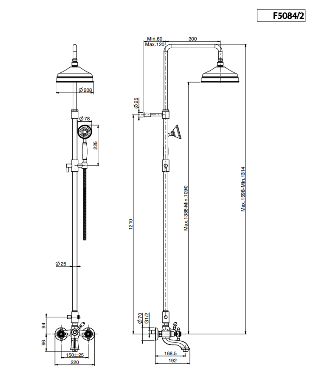 Душевая стойка, Fima Carlo Frattini, Elizabeth, смеситель-в комплекте, тип открывания воды-вентильный, вынос излива, мм-168,5, верхний душ-есть, форма верхнего душа-круглая, размер верхнего душа,мм-205, держатель верхнего душа-есть, вынос, мм-300, размер штанги, мм-1614, ручной душ-в комплекте, шланг-есть, размер шланга, мм-1500, цвет-хром Душевая стойка, Fima Carlo Frattini, Elizabeth, цвет-хром