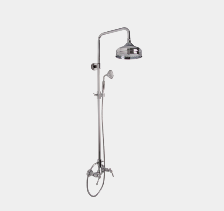 Душевая стойка, Fima Carlo Frattini, Epoque, смеситель-в комплекте, тип открывания воды-однорычажный, верхний душ-есть, форма верхнего душа-круглая, размер верхнего душа,мм-200, держатель верхнего душа-есть, вынос, мм-300, размер штанги, мм-1388, ручной душ-в комплекте, шланг-есть, размер шланга, мм-1500, цвет-хром Душевая стойка, Fima Carlo Frattini, Epoque, цвет-хром