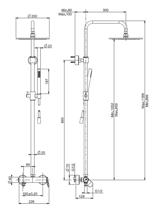 Душевая стойка, Fima Carlo Frattini, Shower column, смеситель-в комплекте, тип открывания воды-однорычажный, тип регулирования воды-керамический картридж, верхний душ-есть, форма верхнего душа-круглая, размер верхнего душа,мм-250, держатель верхнего душа-есть, вынос, мм-300, количество режимов верхнего душа-1, размер штанги, мм-999-1189, кнопочный переключатель, ручной душ-в комплекте, количество режимов ручного душа-1, шланг-есть, размер шланга, мм-1500, цвет-белый матовый Душевая стойка, Fima Carlo Frattini, Shower column, цвет-белый матовый
