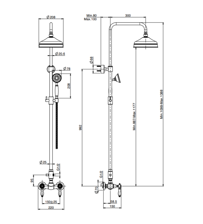 Душевая стойка, Fima Carlo Frattini, Herend, смеситель-в комплекте, тип открывания воды-вентильный, тип регулирования воды-керамическая кран-букса, цвет ручек-белый, материал ручек-керамика, переключатель-есть, верхний душ-есть, форма верхнего душа-круглая, размер верхнего душа,мм-200, держатель верхнего душа-есть, вынос, мм-300, размер штанги, мм-992, ручной душ-в комплекте, шланг-есть, размер шланга, мм-1500, цвет-золото Душевая стойка, Fima Carlo Frattini, Herend, цвет-золото/белый
