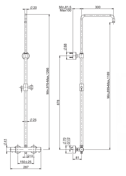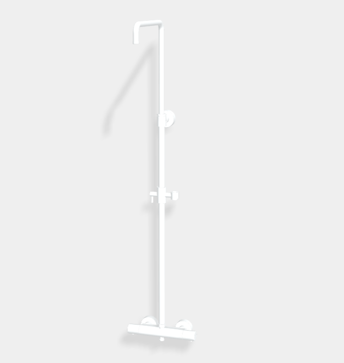 Душевая стойка, Fima Carlo Frattini, Shower column, смеситель-в комплекте, тип открывания воды-вентильный, тип регулирования воды-термостатический картридж, верхний душ-необходимо заказать, держатель верхнего душа-есть, вынос, мм-300, размер штанги, мм-1266, в комплекте-металлические ручки, 2 подвода воды 1/2 с эксцентриком, кнопка ограничения напора на 50%, переключатель на ручке, цвет-белый матовый Душевая стойка, Fima Carlo Frattini, Shower column, цвет-белый матовый