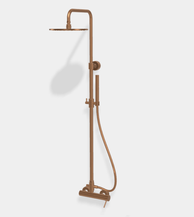 Душевая стойка, Fima Carlo Frattini, Shower column, смеситель-в комплекте, верхний душ-есть, форма верхнего душа-круглая, размер верхнего душа,мм-250, держатель верхнего душа-есть, вынос, мм-300, размер штанги, мм-1073-1363, ручной душ-в комплекте, шланг-есть, размер шланга, мм-1500, переключатель, цвет-брашированная янтарная бронза Душевая стойка, Fima Carlo Frattini, Shower column, цвет-брашированная янтарная бронза