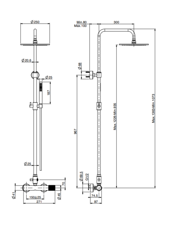 Душевая стойка, Fima Carlo Frattini, Shower column, смеситель-в комплекте, верхний душ-есть, форма верхнего душа-круглая, размер верхнего душа,мм-250, держатель верхнего душа-есть, вынос, мм-300, размер штанги, мм-1073-1363, ручной душ-в комплекте, шланг-есть, размер шланга, мм-1500, переключатель, цвет-брашированное золото Душевая стойка, Fima Carlo Frattini, Shower column, цвет-брашированное золото