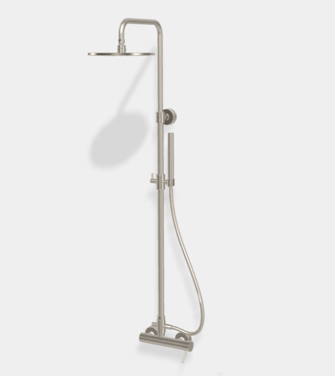 Душевая стойка, Fima Carlo Frattini, Shower column, смеситель-в комплекте, верхний душ-есть, форма верхнего душа-круглая, размер верхнего душа,мм-250, держатель верхнего душа-есть, вынос, мм-300, размер штанги, мм-1073-1363, ручной душ-в комплекте, шланг-есть, размер шланга, мм-1500, переключатель, цвет-никель брашированный Душевая стойка, Fima Carlo Frattini, Shower column, цвет-никель брашированный