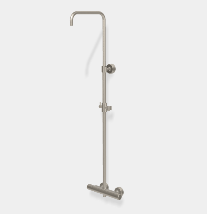 Душевая стойка, Fima Carlo Frattini, Shower column, смеситель-в комплекте, тип открывания воды-вентильный, тип регулирования воды-керамический картридж, верхний душ-необходимо заказать, держатель верхнего душа-есть, вынос, мм-300, размер штанги, мм-908-1289, ручной душ-необходимо заказать, шланг-необходимо заказать, цвет-никель брашированный Душевая стойка, Fima Carlo Frattini, Shower column, цвет-никель брашированный