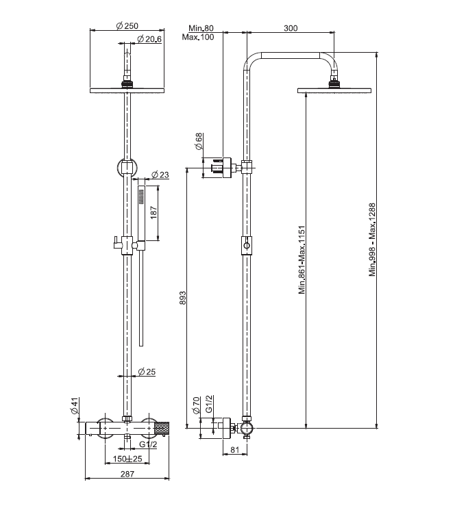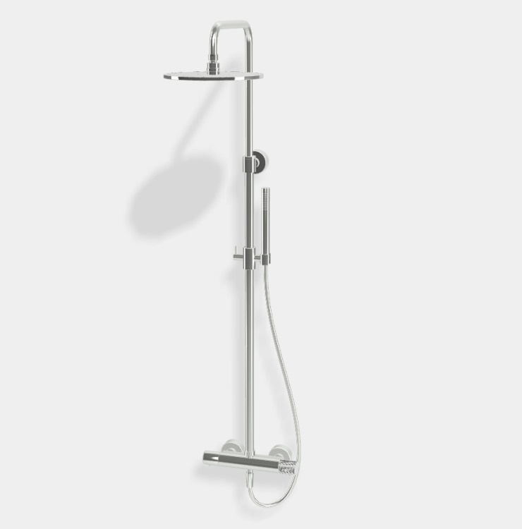 Душевая стойка, Fima Carlo Frattini, Shower column, G COLLECTION, смеситель-в комплекте, тип регулирования воды-термостатический картридж, верхний душ-есть, форма верхнего душа-круглая, размер верхнего душа,мм-250, держатель верхнего душа-есть, вынос, мм-300, размер штанги, мм-998-1288, ручной душ-в комплекте, шланг-есть, размер шланга, мм-1500, 2 подвода воды 1/2 с эксцентриком, ручки-металл, цвет-хром Душевая стойка, Fima Carlo Frattini, Shower column, G COLLECTION, цвет-хром