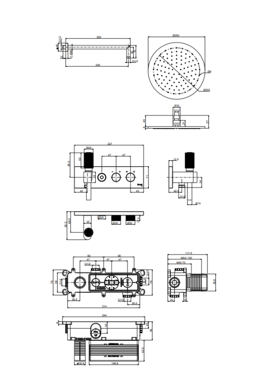 Душевой комплект, Fima Carlo Frattini, Shower systems, смеситель-в комплекте, монтаж смесителя-настенный встраиваемый, тип регулирования воды-термостатический картридж, внутренняя часть-в комплекте, верхний душ-есть, форма верхнего душа-круглая, размер верхнего душа,мм-250, держатель верхнего душа-есть, вынос, мм-350, ручной душ-в комплекте, шланг-есть, размер шланга, мм-1500, держатель для ручного душа-есть, цвет-никель шлифованный Душевой комплект, Fima Carlo Frattini, Shower systems, цвет-никель шлифованный