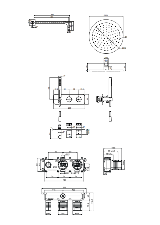 Душевой комплект, Fima Carlo Frattini, Shower systems, смеситель-в комплекте, монтаж смесителя-настенный встраиваемый, тип открывания воды-вентильный, тип регулирования воды-термостатический картридж, внутренняя часть-в комплекте, верхний душ-есть, форма верхнего душа-круглая, размер верхнего душа,мм-250, держатель верхнего душа-есть, вынос, мм-350, в комплекте-ручной душ с защитой от извести анти-кальк, шланг-есть, размер шланга, мм-1500, хромалюкс, держатель для ручного душа-есть, шланговое подключение-есть, цвет-янтарная бронза Душевой комплект, Fima Carlo Frattini, Shower systems, цвет-янтарная бронза