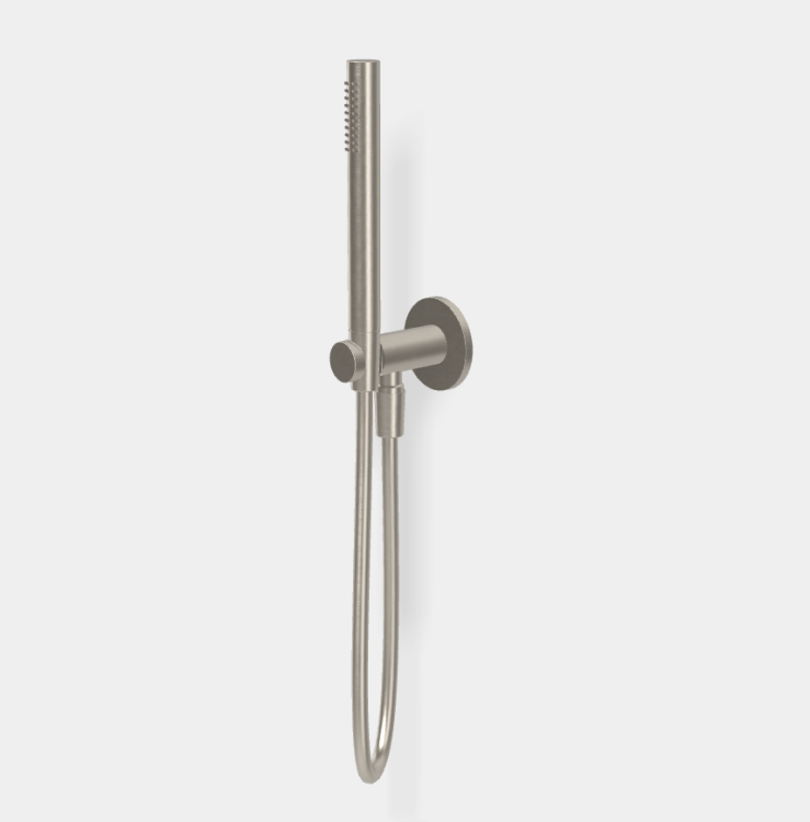 Душевой набор, Fima Carlo Frattini, Shower set, размер душевого диска, мм-23*187, форма лейки-цилиндрическая, держатель для душа-есть, шланг-есть, длина шланга, мм-1500, хромалюкс, шланговое подключение-есть, цвет-брашированный никель Душевой набор, Fima Carlo Frattini, Shower set, цвет-брашированный никель