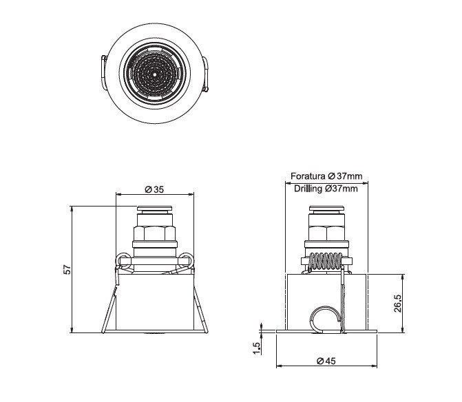 Микродуш, Fima Carlo Frattini, Waterdot, тип установки-потолочный встраиваемый, монтаж-скрытый с пружинным креплением, размер душевого диска, мм-28, форма-круглая, количество режимов-1, тип струи-дождь (Rain), антинакипная (против известкового налета), быстросъемный соединитель для шланга Ø10, отверстие для монтажа снизу Ø 37 мм, внутренняя часть-необходимо заказать, цвет-никель брашированный Микродуш, Fima Carlo Frattini, Waterdot, скрытый с пружинным креплением, тип струи-дождь (Rain), цвет-никель брашированный