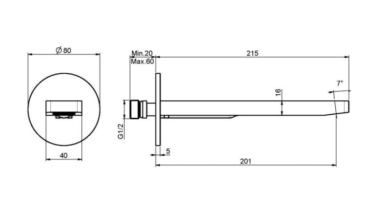 Излив, Fima Carlo Frattini, Shower accessories, настенный, вынос излива, мм-201, стандарт подводки-1/2", цвет-белый матовый Излив, Fima Carlo Frattini, Shower accessories, цвет-белый матовый