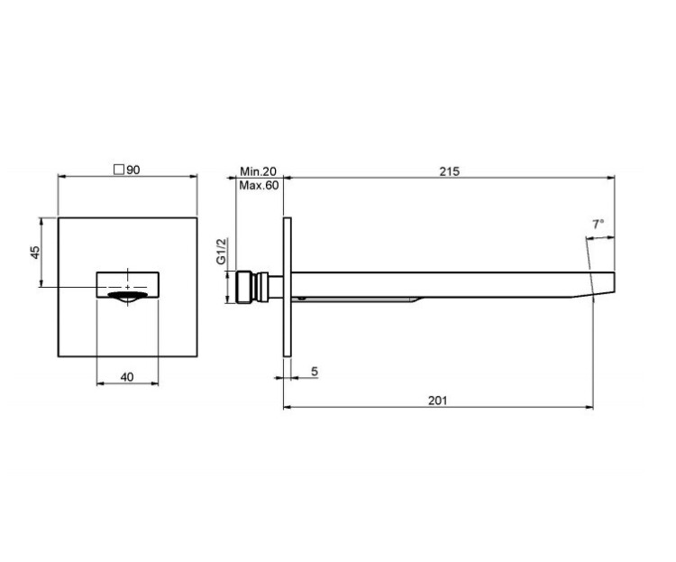 Излив, Fima Carlo Frattini, Shower accessories, монтаж-настенный, вынос излива, мм-201, стандарт подводки-1/2", цвет-чёрный матовый Излив, Fima Carlo Frattini, Shower accessories, цвет-чёрный матовый