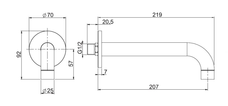 Излив, Fima Carlo Frattini, Shower accessories, монтаж-настенный, вынос излива, мм-207, стандарт подводки-1/2", цвет-хром Излив, Fima Carlo Frattini, Shower accessories, цвет-хром
