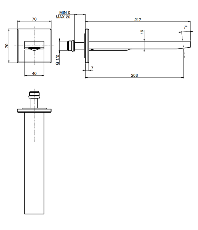 Излив, Fima Carlo Frattini, Shower accessories, монтаж-настенный, вынос излива, мм-201, стандарт подводки-1/2", цвет-хром черный брашированный Излив, Fima Carlo Frattini, Shower accessories, цвет-хром черный брашированный