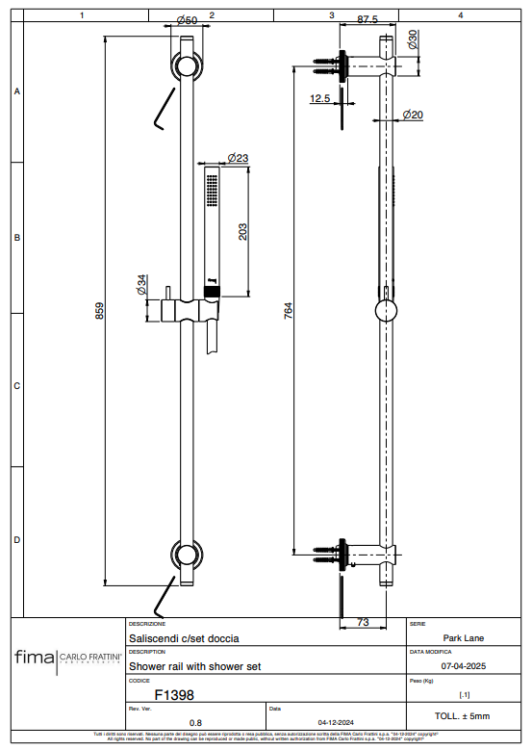 Штанга для душа, Fima Carlo Frattini, Park Lane, длина штанги, мм-859, держатель ручного душа-есть, в комплекте-ручной душ с защитой от извести анти-кальк, гибкий шланг хромалюкс, мм-1500, цвет-бронза брашированная янтарная Штанга для душа, Fima Carlo Frattini, Park Lane, 859, цвет-бронза брашированная янтарная