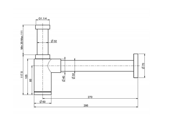 Сифон, Fima Carlo Frattini, Complementi Bagno, тип сифона-бутылочный, размер ввод/отвод-1 1/4", цвет-черный матовый Сифон, Fima Carlo Frattini, Complementi Bagno, цвет-черный матовый